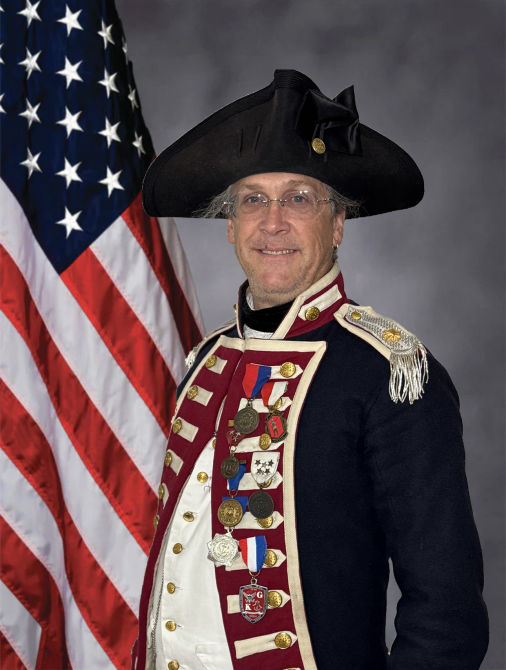 Lt. Colonel Matthew McAllister joined the company in 2018. He has participated as a bass drummer in the Fife and Drum Corp, Quartermaster, and Line Major of the company. He is skilled in the flintlock musket and was on the KG Musket team in the RI Militia competitions from 2019-2024. He was a team competitor in 2023 and earned the Marksman qualification badge.